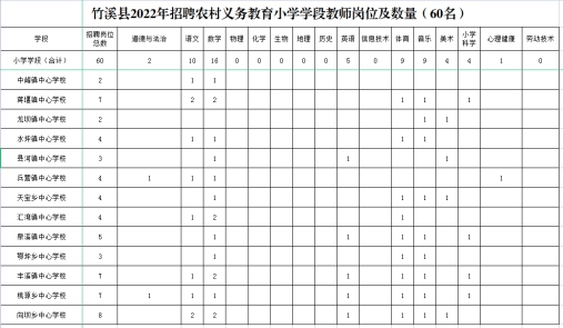 附件:1.竹溪县2022年招聘农村义务教育小学学段教师岗位及数量(60名)