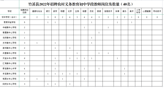 2.竹溪县2022年招聘义务教育初中学段教师岗位及数量(40名)