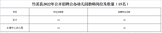 3.竹溪县2022年公开招聘公办幼儿园教师岗位及数量(15名)