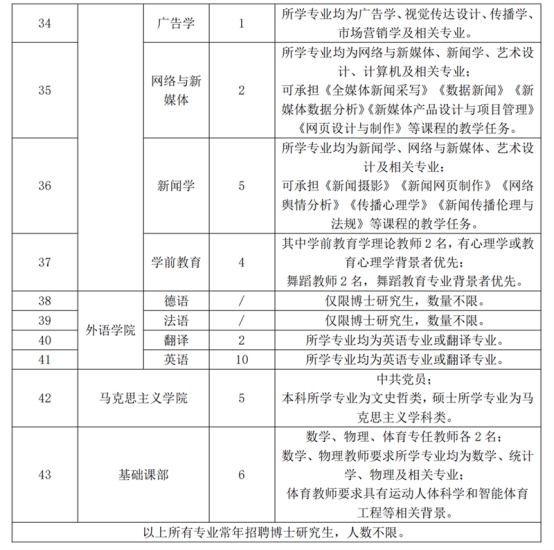 6.博士研究生、中共党员、有高校教学经验、持有本专业中级以上技能证书或有一定的教学科研成果者优先考虑。