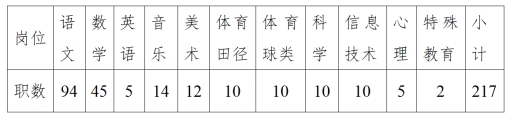 (三)幼儿园信息技术和体育教师岗位职数:6名