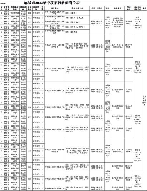 1.《麻城市2022年专项公开招聘教师岗位表》