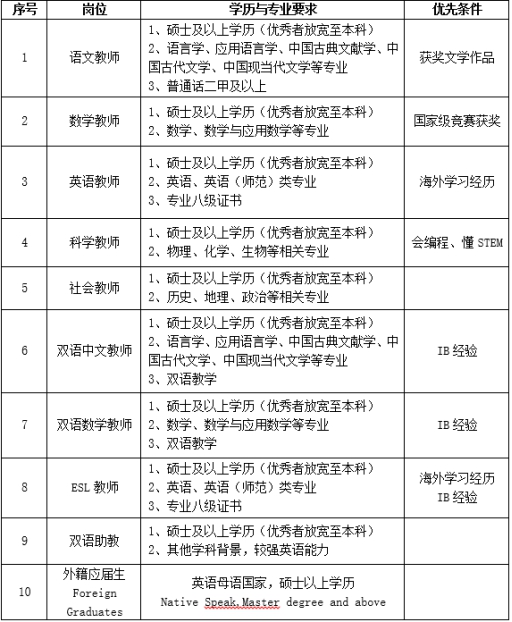 3、福利: 五险一金、子女就读优惠、补充医疗保险、北大教育体系和IB教育体系双重培训机会、教师公寓、教师食堂、节日福利、每年体检等等