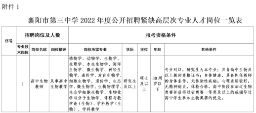 附件:《襄阳市第三中学2022年度公开招聘紧缺高层次专业人才岗位一览表》