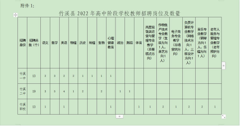1、竹溪县2022年高中阶段学校教师招聘岗位及数量