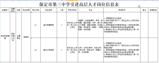 保定市第三中学2022年引进高层次人才公告