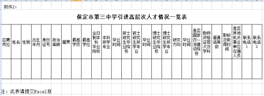 附件1:保定市第三中学2022年引进高层次人才报名表