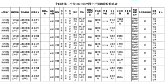 详见《个旧市第三中学2022年校园招聘岗位信息表》。