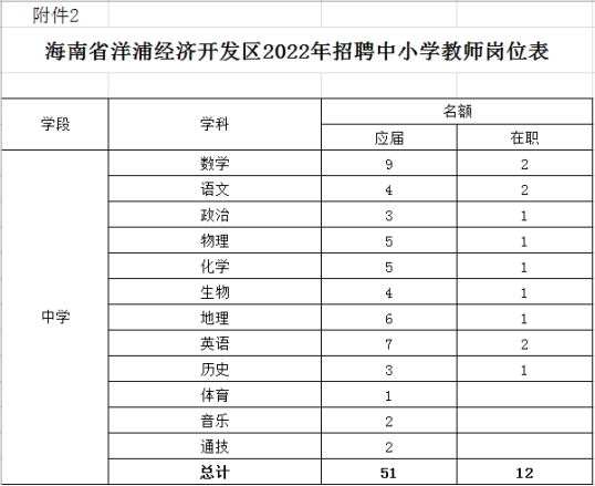 附件2:海南省洋浦经济开发区2022年招聘中小学教师岗位表