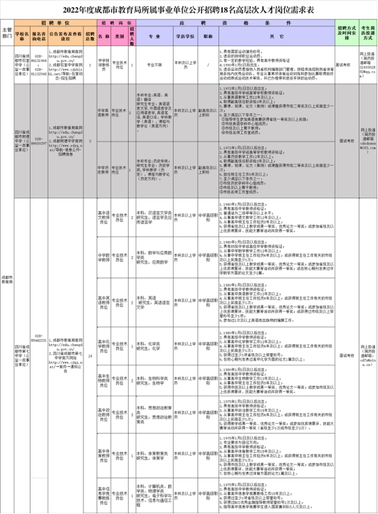 附件:2022年度成都市教育局所属事业单位公开招聘18名高层次人才岗位需求表