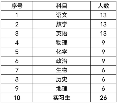 各学科教师招聘计划: