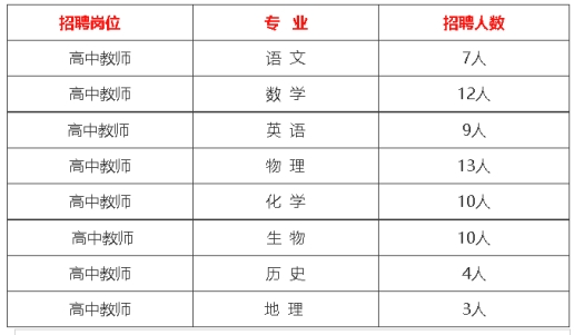 经县政府研究同意,2022年以招才引智方式招聘高中教师103名,性质为事业编制。 专业及招聘人数见下表: 宝丰一高