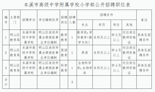 附件下载:本溪市高级中学附属学校小学部面向2022届毕业生招聘公告附件.doc