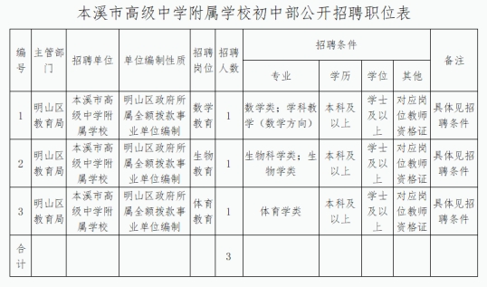 附件下载:本溪市高级中学附属学校初中部面向2022届毕业生招聘公告附件.doc