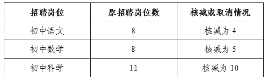 宁波市海曙区教育局公开招聘2020学年事业编制中小学教师(第一批)报名与资格审核工作已结束。根据招聘公告规定,符合招聘条件的应聘人数和招聘岗位数比例不足3:1的,酌情核减该岗位招聘岗位数或取消该岗位招聘。现将核减的招聘指标公布如下: