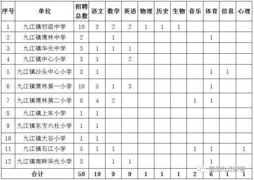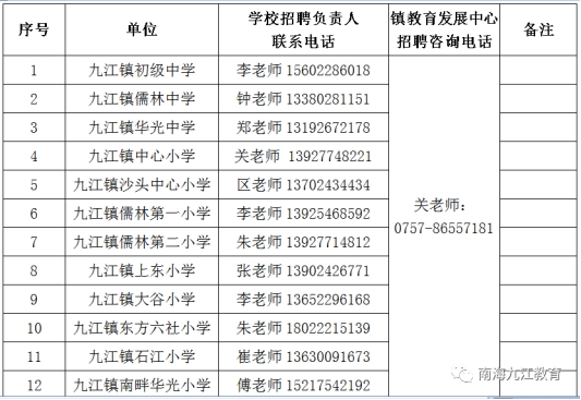 备注:以上招聘对象不含九江镇各学校在职镇聘教师。