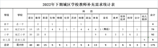 为保证城区中小学、幼儿园教育教学工作正常开展,改善城区中小学、幼儿园教师队伍结构,根据城区中小学、幼儿园教师缺额实际,经研究决定,从全县在编在岗的公办教师中公开补充部分工作人员到县城中小学、幼儿园任教。