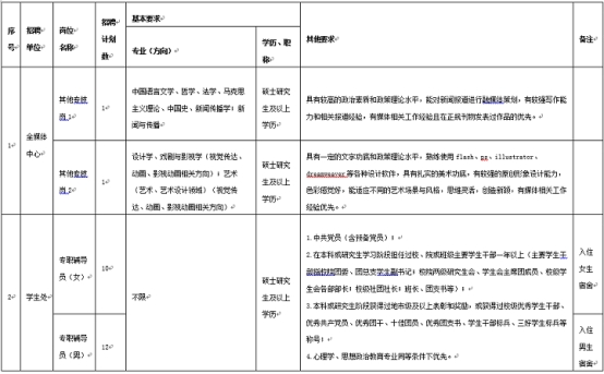 7.应聘人员为硕士研究生的年龄不超过30周岁,出生日期须在1992年7月1日(含)之后;具有博士研究生学历的年龄不超过35周岁,出生日期须在1987年7月1日(含)之后。已在我校其他岗位工作的人员,如意愿报考此次工作人员公开招聘的,年龄条件放宽2周岁。