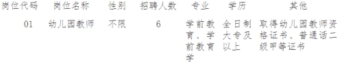 2、学前教育专业全日制大专及以上学历、具有幼儿园教师资格证书、普通话二级甲等证书。