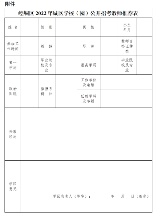 附件:崆峒区2022年城区学校(园)公开招考教师推荐表