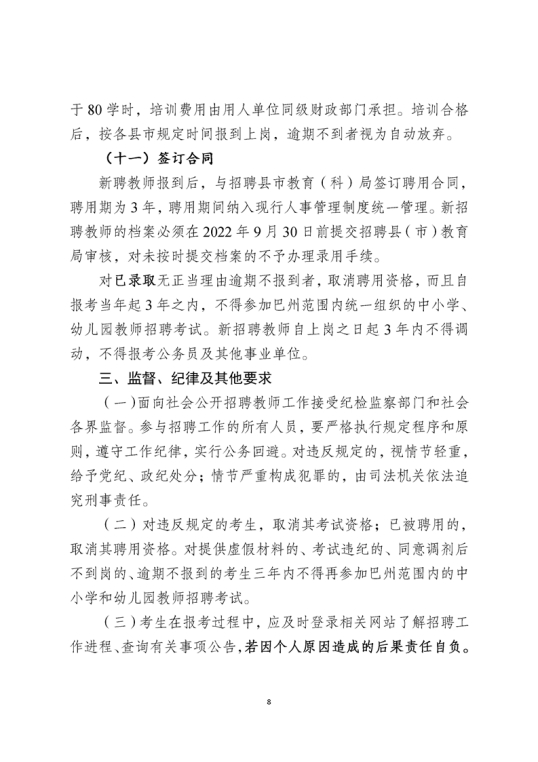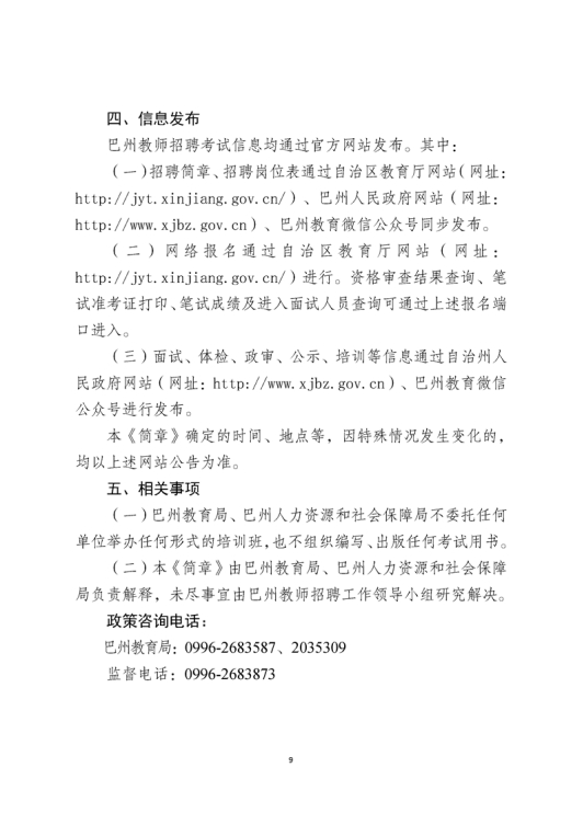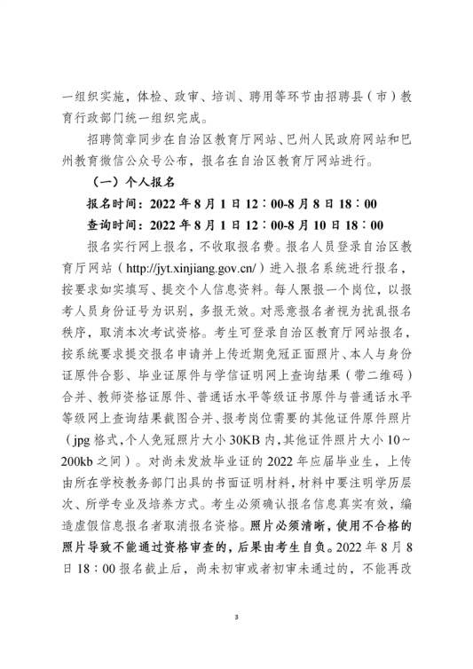 新疆巴州2022年中小学教师招聘公告(107名)