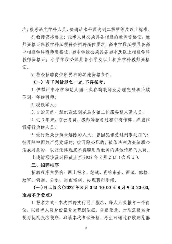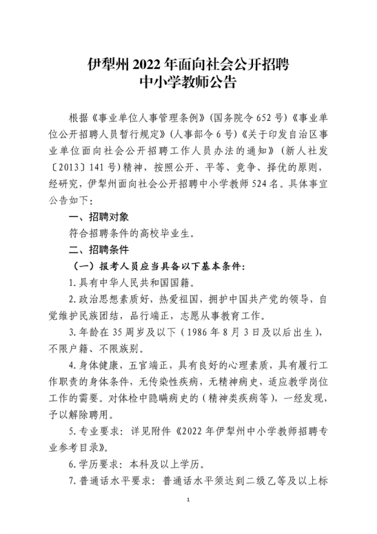 新疆伊犁州2022年中小学教师招聘公告(524名)