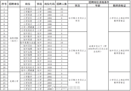 此次招聘岗位、人数及资格条件等情况详见《2022年三门峡市伯阳学校、龙湖小学公开招聘合同制教师岗位明细表》(附件1)。