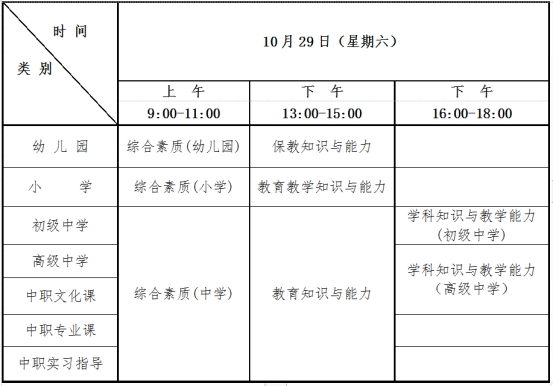 申请中职专业课及中职实习指导教师资格的人员参加高级中学教师的“综合素质”和“教育知识与能力”两科笔试,“学科知识与教学能力”科目纳入面试环节考查。