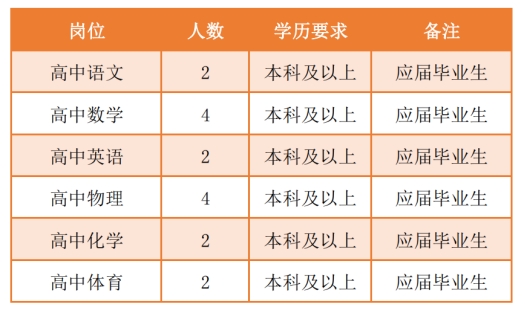 2. 身心健康,能胜任中学教学,班级管理能力强。
