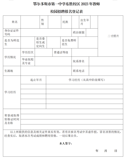 鄂尔多斯市第一中学东胜校区(原东联现代高级中学)2023年教师招聘公告