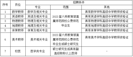 为进一步优化学校教师队伍,提高教师队伍整体素质,促进教师队伍的均衡发展,我校2022年将本着公正公开、宁缺毋滥、择优录取的原则,面向2023届六所教育部直属师范院校公费师范生、硕士研究生及副高级以上职称人员招聘教师和校医。现将本次招聘报名相关事宜公告如下: