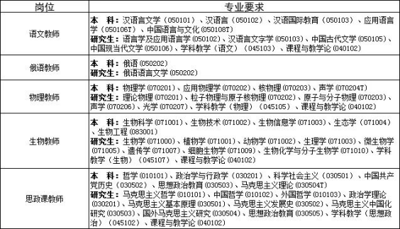 根据学校教育教学需要,本次计划引进急需紧缺人才5人,其中语文教师1人、俄语教师1人、物理教师1人、生物教师1人、思政课教师1人。