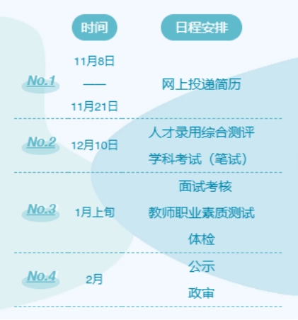 4、统一组织考核通过人员进行“教师职业素质测试”、体检;