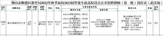 佛山市顺德区罗沙小学2022年秋季面向2023届毕业生赴高校设点公开招聘教师(第一批)公告(武汉)
