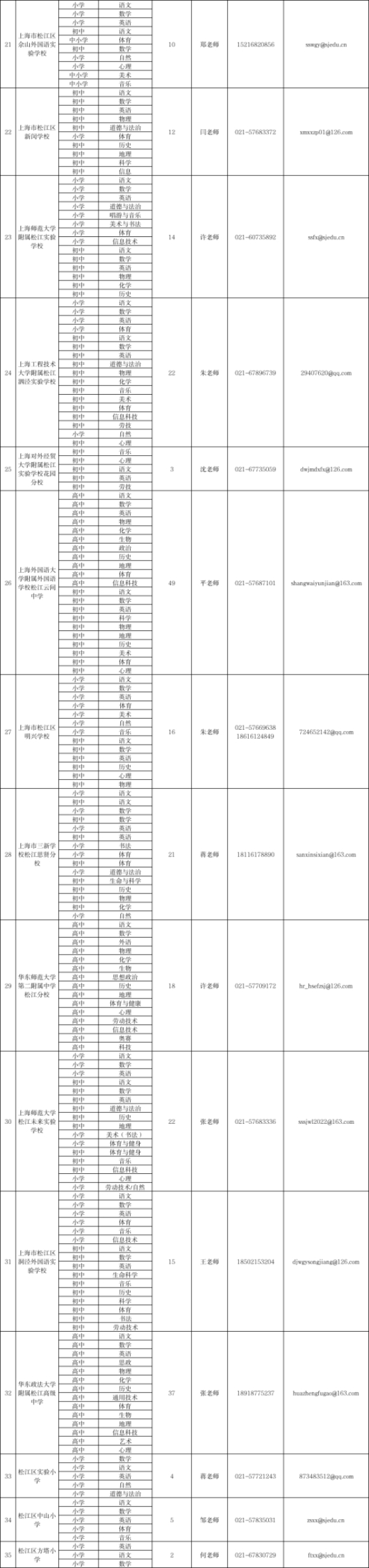 上海市松江区教育局下属事业单位教师(具体岗位名称及人数需求见附件)。