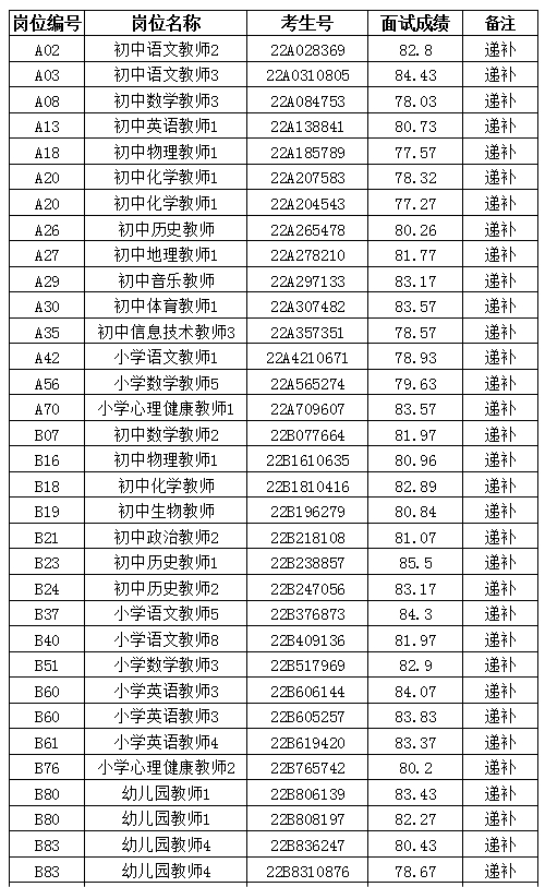 因部分考生放弃在我区的择业资格,根据《无锡高新区(新吴区)教育系统2023年校园招聘教师公告》规定,现有以下考生递补进入体检环节: