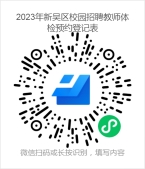 确认可参加第一批体检的考生请扫描以下二维码《2023年新吴区校园招聘教师体检预约登记表》进行预约,每天限量30人,预约截止时间为11月25日12:00,不确定可参加体检的请勿填写。后续批次体检时间另行通知。