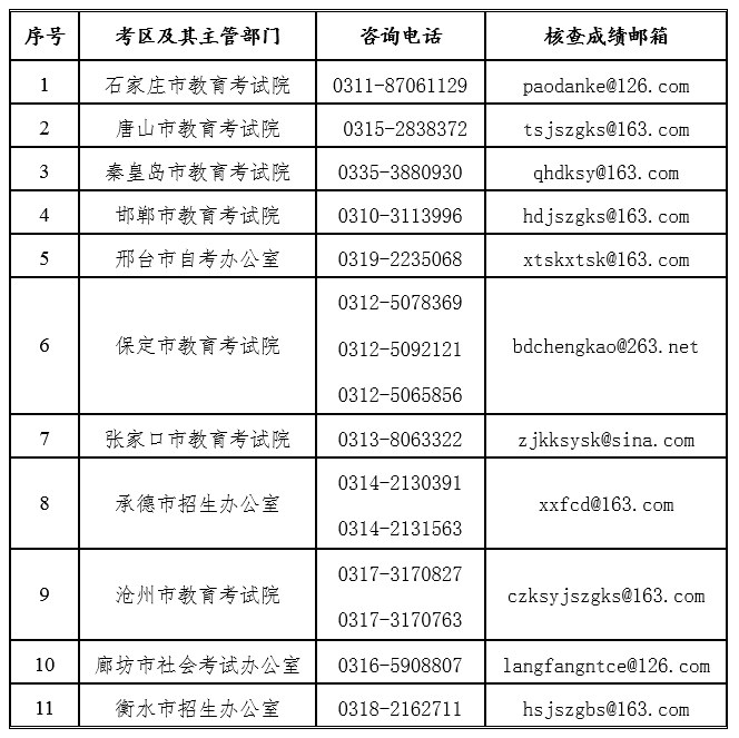 各考区主管部门、咨询电话及核查成绩邮箱(附件3)