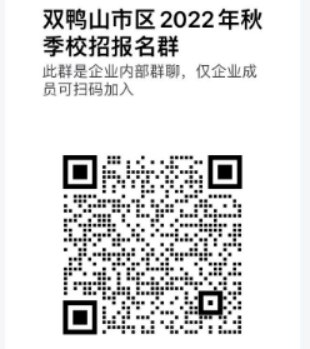 由于招考条件调整,以上三个岗位报名时间单独延长两天,具体时间为2022年12月12日8:30-12月13日17:00,扫描下方二维码,加入“双鸭山市区2022年秋季校园招聘教师”企业微信工作群,点击群公告链接,进行报名。
