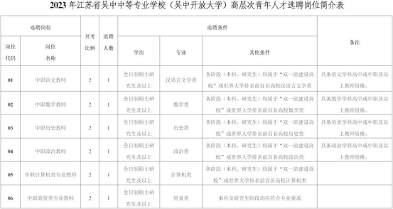 1.2023年江苏省吴中中等专业学校(吴中开放大学)高层次青年人才选聘岗位简介表