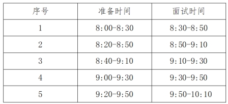 面试人数超过5人的,时间依次顺延。