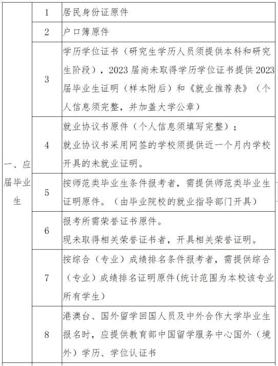 (二)未按时参加资格复审的,视作放弃面试资格。资格复审须提供如下材料原件和复印件: