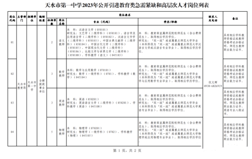 附件:天水市第一中学2023年公开引进教育类急需紧缺和高层次人才岗位列表