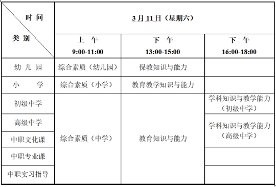 (二)初级中学、高级中学、中职文化课的“学科知识与教学能力”笔试具体科目见附件3。