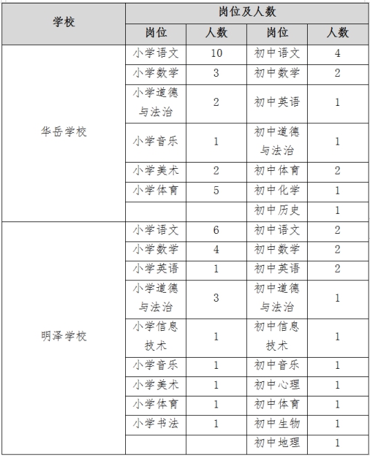 根据各校教师的实际需求,以学校为单位进行招聘。详细岗位如下: