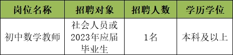根据学校发展需要,面向社会公开招聘1名普通编外教师,具体如下: