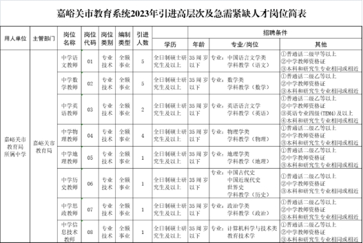 嘉峪关市教育系统2023年引进高层次及急需紧缺人才公告