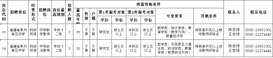 本次泉州五中计划招聘教师4人,详见下表。
