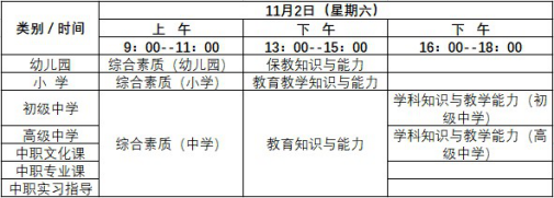 (二)考试时间:2019年11月2日,所有考试科目均采用纸笔方式进行,具体安排如下: