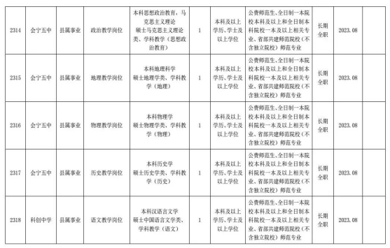 附件:1.2023年会宁县教育系统急需紧缺人才引进岗位条件表